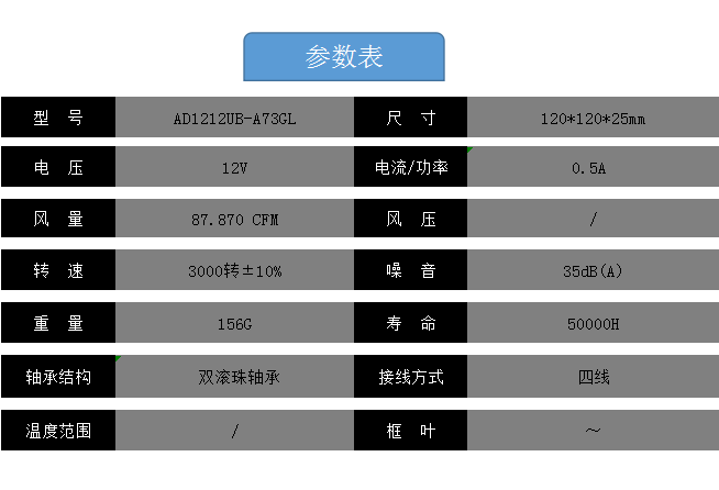 ADDA協(xié)喜 AD1212UB-A73GL 12V 0.5A 4線PWM風(fēng)機