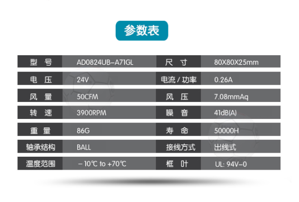 ADDA協(xié)禧 AD0824UB-A71GL 24V 0.26A 8cm 2線散熱風(fēng)機