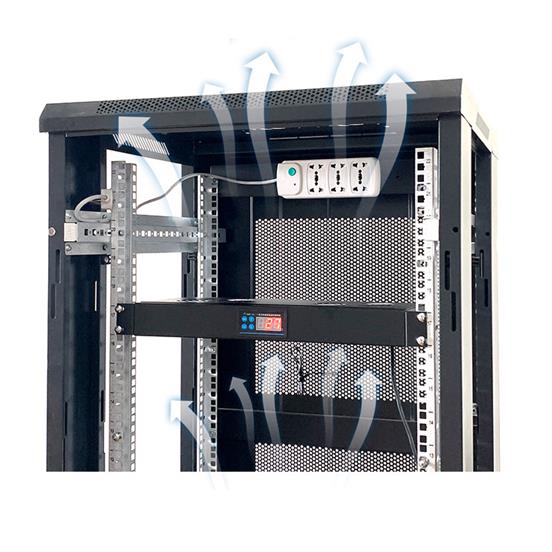 我司專利開發(fā)出一款 新型機柜溫控散熱機,散熱機集成 2~4個大風量靜音風扇,1U安裝尺寸,安裝方面,插電即用,